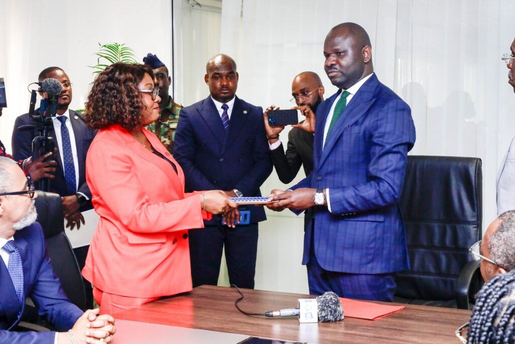 Ci-dessus,Laurence Ndong prenant officiellement ses fonctions de Ministre de la Fonction Publique et du Renforcement des Capacité
