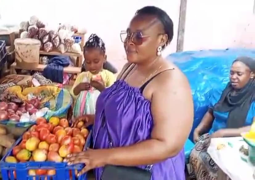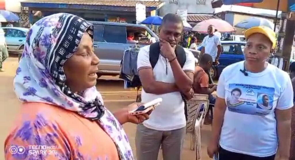 La candidate NTSAME OVONO en immersion au marché de Bambouchine