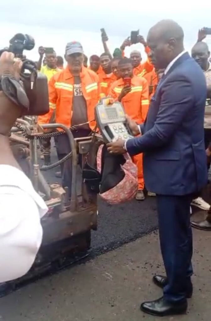 La délégation présidentielle s’est ensuite rendue sur le chantier titanesque du tronçon Ntoum–Cocobeach. Sur place, dans un geste hautement symbolique, le président a pris une pelle et s’est mêlé aux ouvriers, histoire de les encourager pendant que les machines d’Ebomaf tournaient à plein régime. Le programme a continué avec la visite d’un chantier de construction, toujours mené par Ebomaf, d’une école moderne située face à l’ancienne école de Cocobeach.