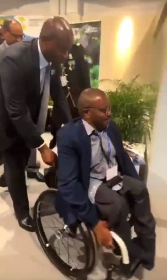 Brice Oligui poussant la chaise roulante du vice-président Marc Ona Essangui