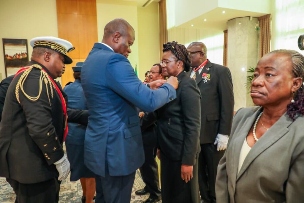 Ci-dessus , la cérémonie de décoration présidée par S.E. Brice Clotaire Oligui Nguema, Président de la République