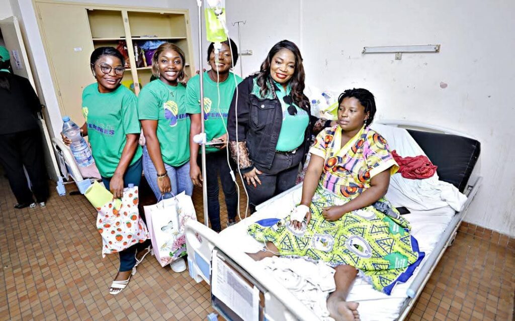 Ci-dessus, Délia Bilouni en action humanitaire dans le cadre de son association Espoir de Femmes.