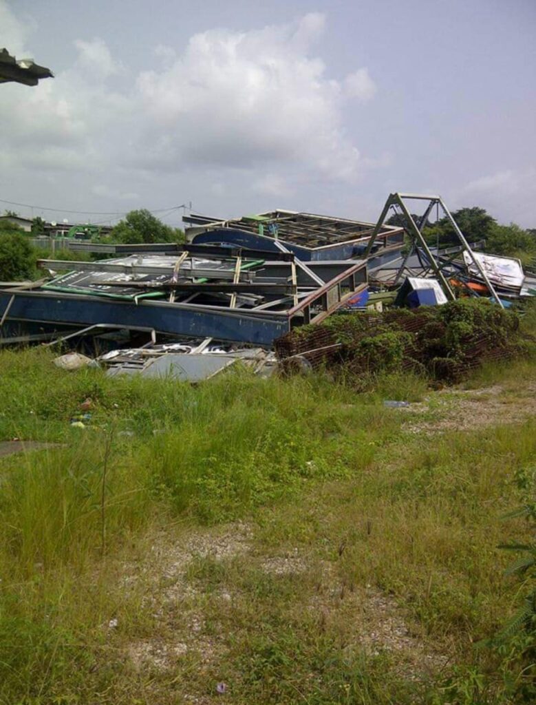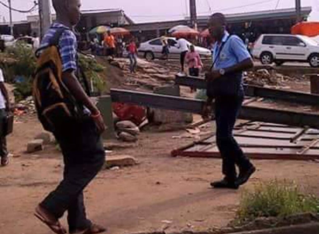 Ci-dessous , André Gide Ondo Ndong et les tristes images du démantèlement brutal de ses panneaux publicitaires orchestré sous le régime Bongo.