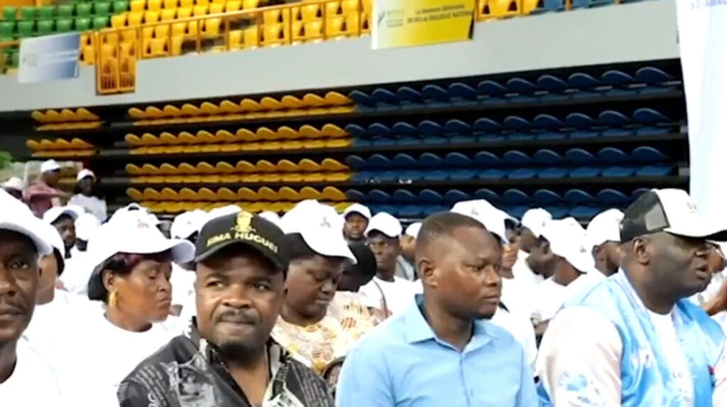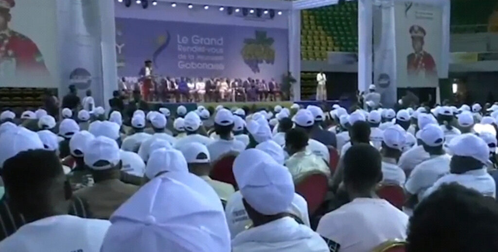 Les jeunes, coiffés de casquettes et parés de t-shirts à l’effigie du chef de l’État, ont été réduits au rôle de figurants dans un spectacle politiquement orchestré. Les chants de louange en l’honneur du président ont remplacé les débats intellectuels, et les affiches géantes glorifiant Oligui Nguema ont transformé le gymnase en un temple de culte à la personnalité.