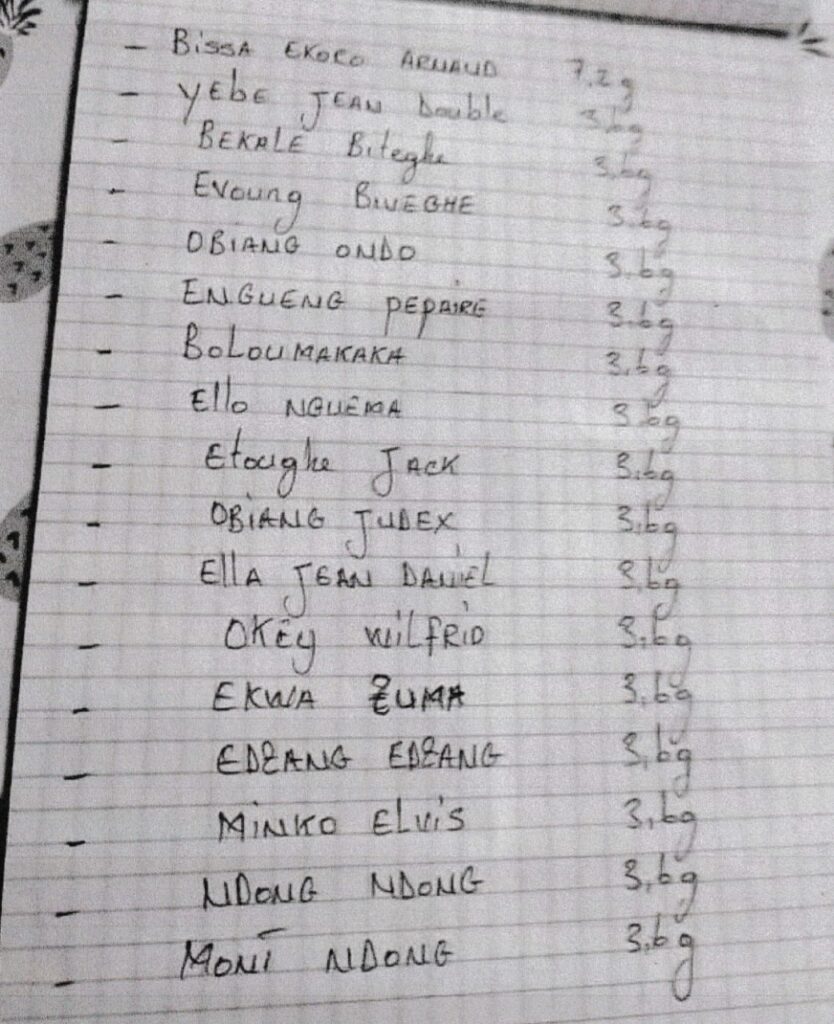A gauche , liste des orpailleurs et le quota d’or versé chaque semaine à la Direction Générale de la SEM sans un seul reçu .
