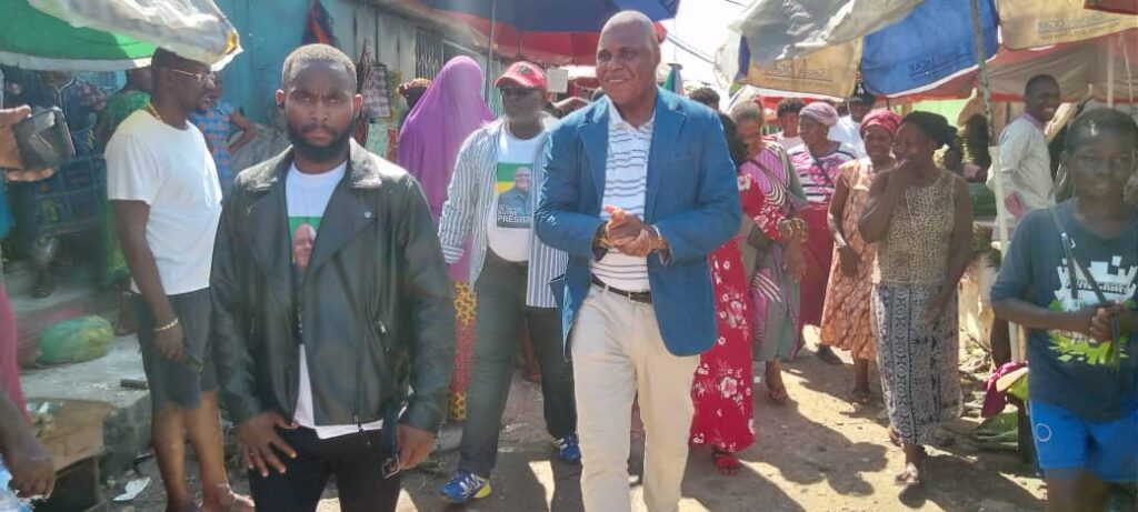 Au cours du week-end des 6 et 7 mai, le candidat à l’élection présidentielle 2023, Bertrand Zibi, a visité les différents marchés de la capitale gabonaise pour aller à la rencontre des commerçants.
