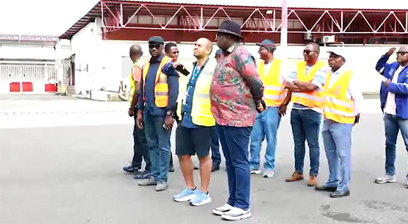 Ci-dessous, le ministre de l’Énergie (en chapeau) et les responsables d’ARISE au Gabon lors de la réception des deux groupes électrogènes.