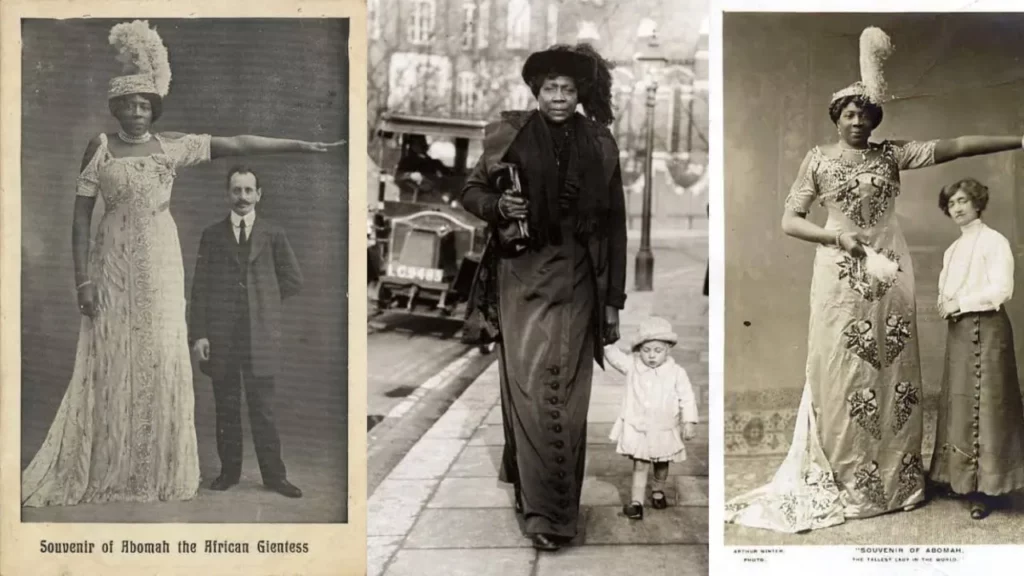 Le 4 mars 1925, le monde perdait une icône aussi fascinante que controversée : Abomah, la femme noire géante. Originaire de Caroline du Sud, mais revendiquant des racines au Dahomey (actuel Bénin), elle était connue pour sa taille impressionnante de 2,30 mètres, ce qui lui valut le titre de la femme la plus grande du monde.