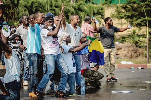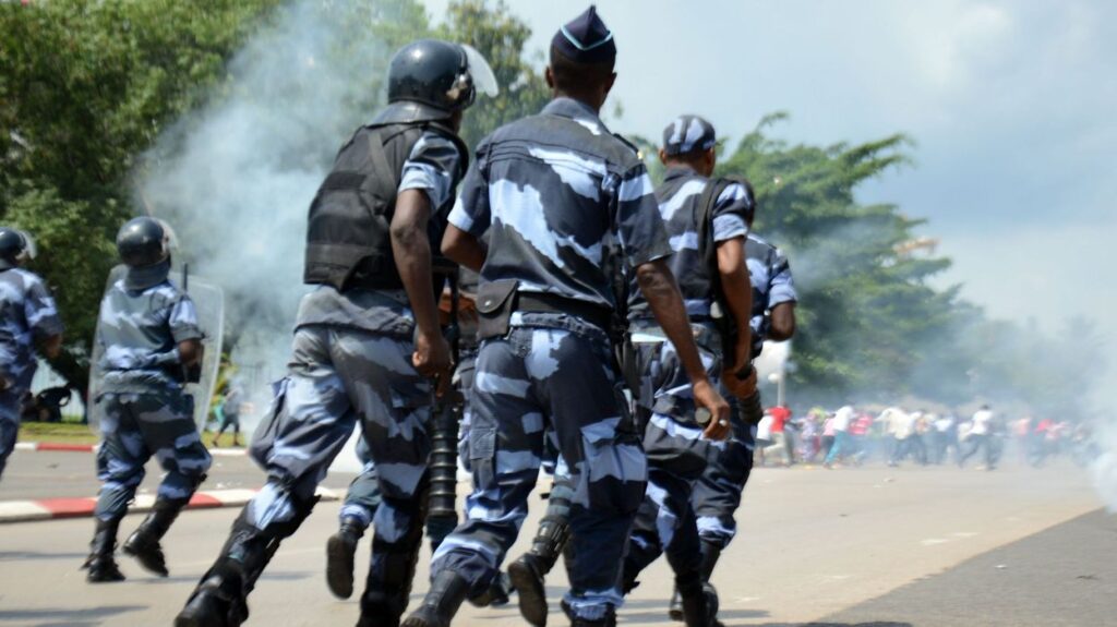 Aujourd’hui composante du CTRI , les forces de polices en train de charger la population réclamant la libération du Gabon .
