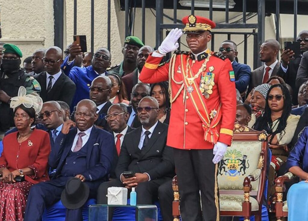 Ci-dessus, le général Brice Oligui Nguema lors des cérémonie de son investiture.