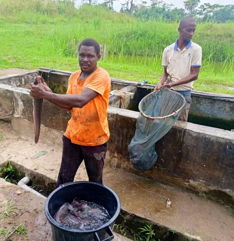 La phase pilote d’élevage de silures, orchestrée par l’association MOUETSE, a connu un succès éclatant sous la direction éclairée de Sonia MANOMBA, déléguée spéciale adjointe de la ville de Tchibanga. Ce projet a prospéré grâce à l’assiduité, à la détermination et à la volonté inébranlable de Richard MFOUMBI, Sabine Marcelle MATCHIENDY et Serge, tous membres dévoués de l’association MOUETSE.