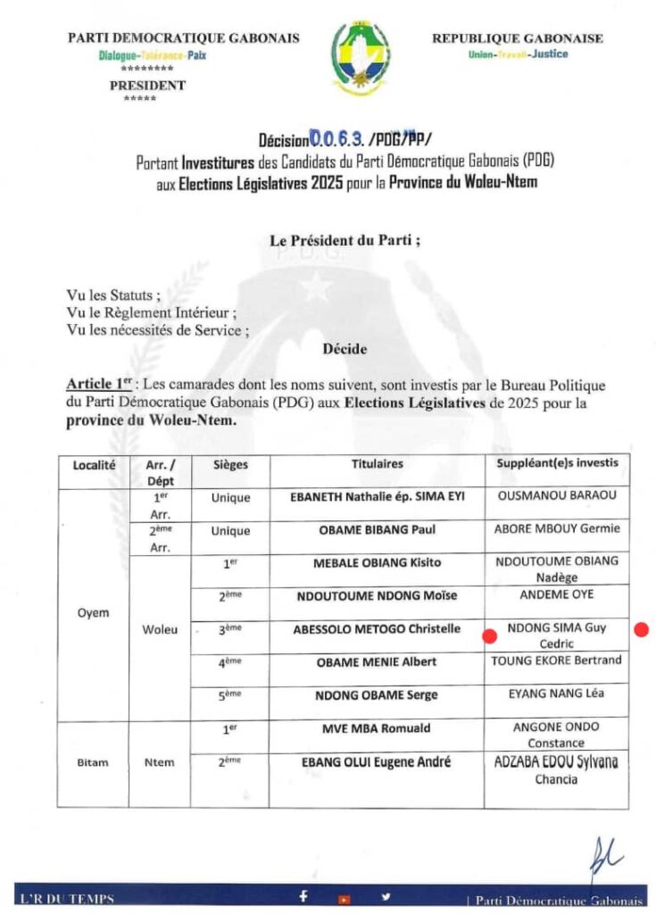 C’est par un message empreint d’élégance et de retenue que Patric Bibang-Bi-Nguema , militant engagé du Parti Démocratique Gabonais (PDG), a confirmé ce que certains redoutaient en silence : il ne représentera pas le parti dans le canton Kye pour les prochaines échéances électorales. Une décision officielle, brutale, tombée sans explication claire, qui a surpris plus d’un dans les rangs de ses sympathisants.