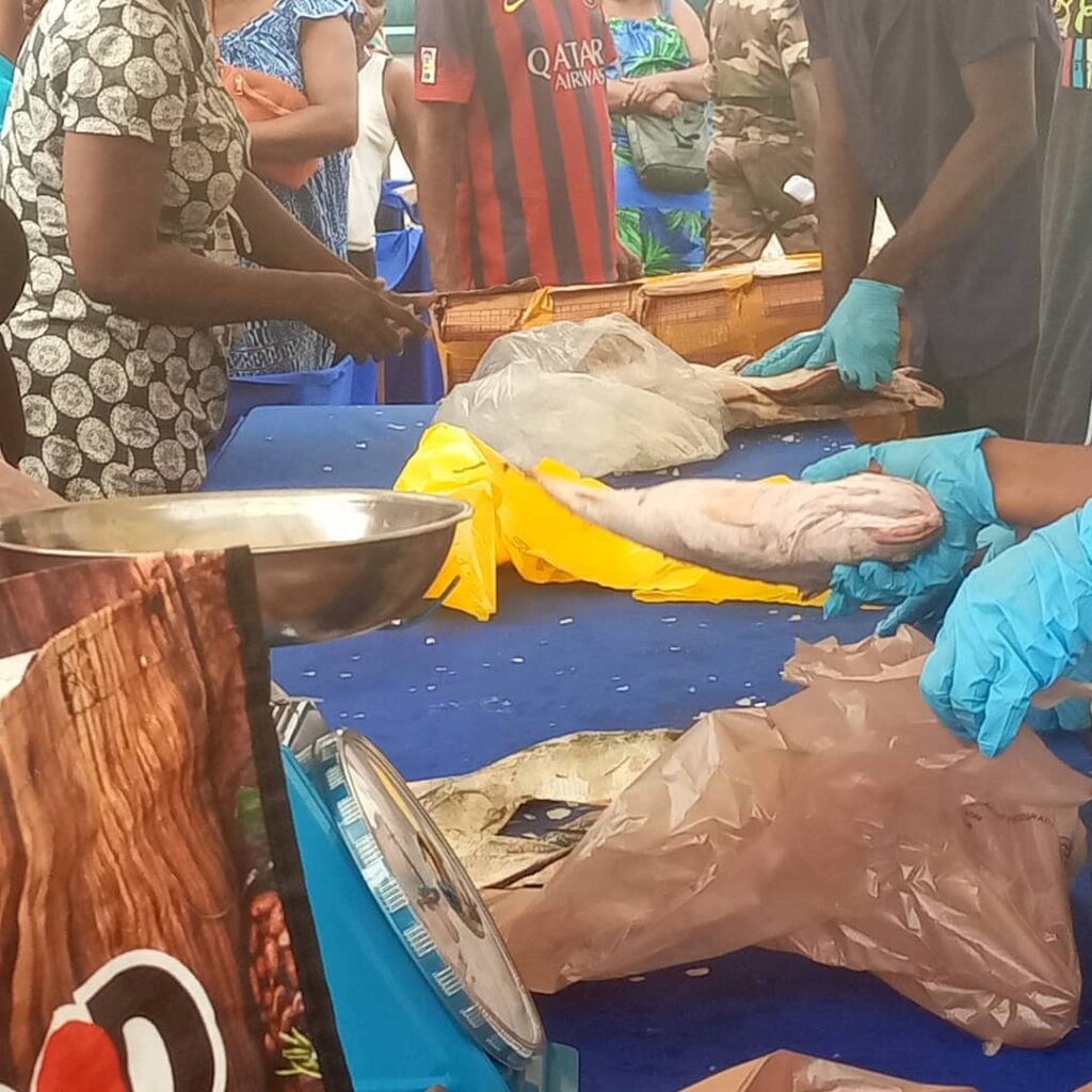 Dès les premières heures de la matinée, les Gabonais se sont massés devant les étals de la nouvelle entreprise “Gabon Fish”. À un prix unique et symbolique de 800 FCFA, diverses variétés de poissons frais, pêchés dans les eaux gabonaises, ont été proposées à la vente. Cette initiative, qui se déroulera jusqu’à samedi 22 juin, met à disposition un total impressionnant de 120 tonnes de poisson, assurant ainsi une abondance de produits de la mer pour les résidents de Libreville.