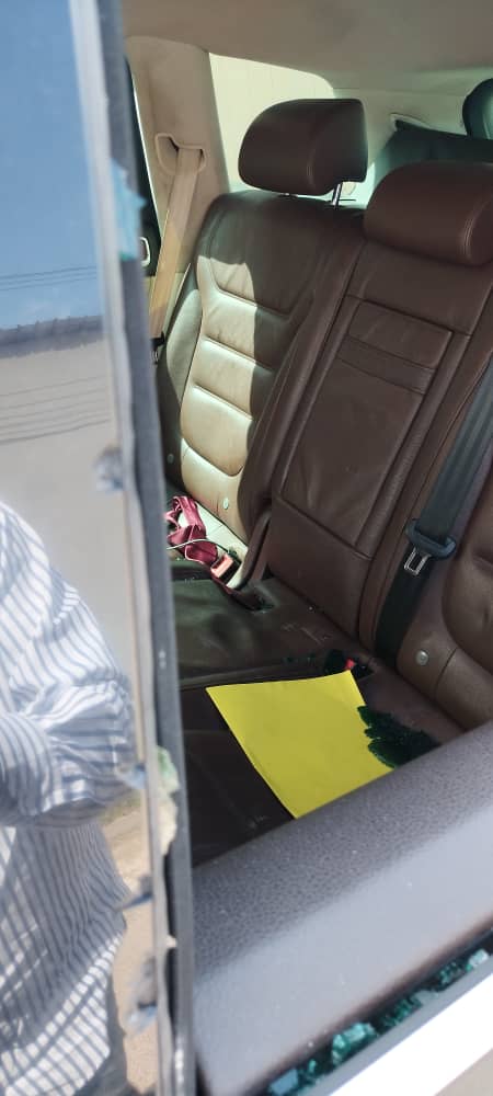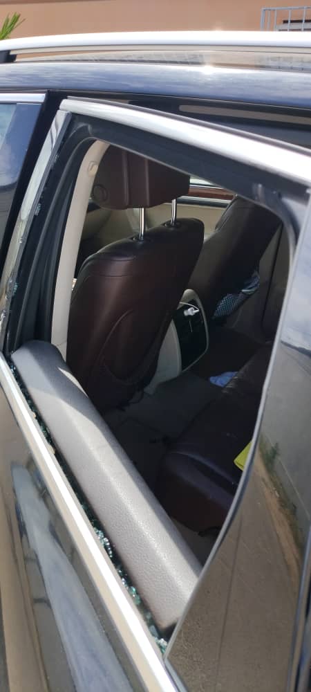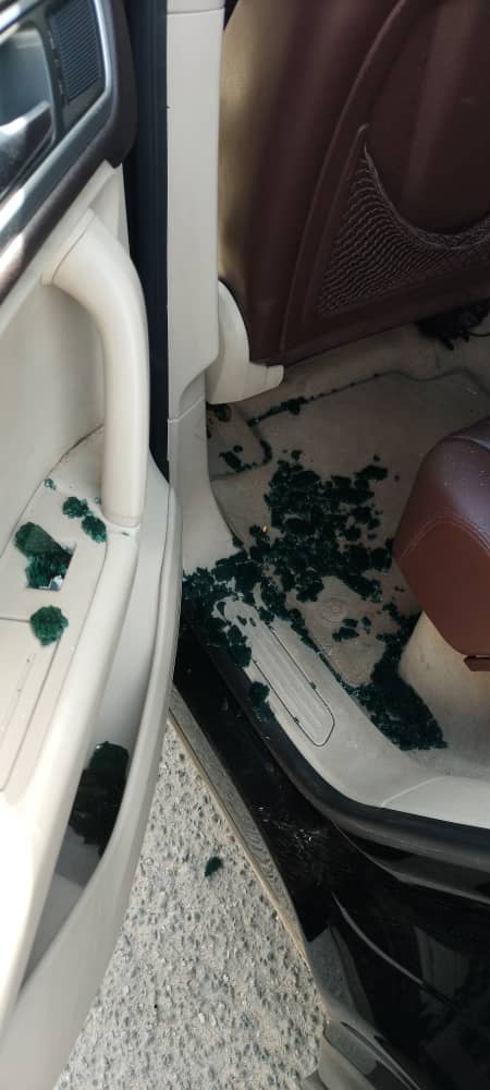 La voiture caillassée de la star