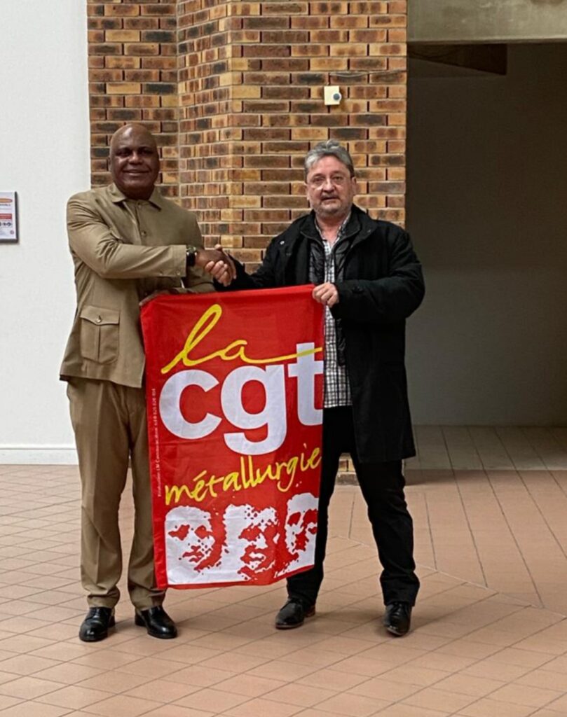 Au Gabon, notre camarade Jean-Remy Yama, Président de l’organisation syndicale Dynamique Unitaire, est incarcéré sans perspective de procès depuis le 27 février 2022. Nos camarades Gabonais et la CGT considèrent que Jean Rémy Yama est un prisonnier politique et que son emprisonnement n’est qu’une manœuvre afin de le faire taire à seulement quelques semaines des élections présidentielles. Lors de sa visite au siège confédéral de la CGT, l’ancien prisonnier politique Bertrand Zibi Abeghe a pu témoigner des conditions inhumaines dans lesquelles Jean Rémy Yama et les prisonniers pour délits d’opinions sont détenus à la prison centrale de Libreville.