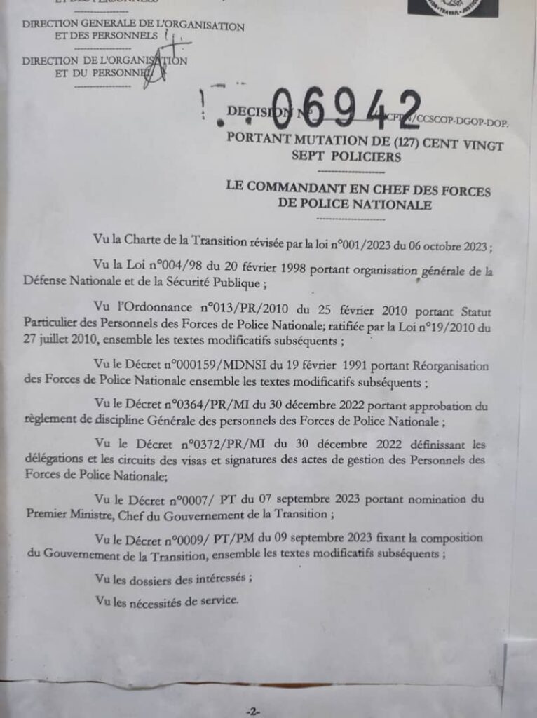 Dans les rangs de la Police Nationale, une situation préoccupante se dessiner : des mutations marquées par d’importantes erreurs administratives, des doublons de noms et des affectations inappropriées. Il serait difficile d’imaginer que de tels documents aient pu franchir toutes les étapes nécessaires avant d’arriver à la signature du Commandant en Chef. Une telle négligence, si elle venait à échapper aux vérifications, pourrait nécessiter des sanctions adaptées. Comment de telles erreurs graves pourraient-elles passer inaperçues dans des documents censés garantir le bon fonctionnement de l’institution ?