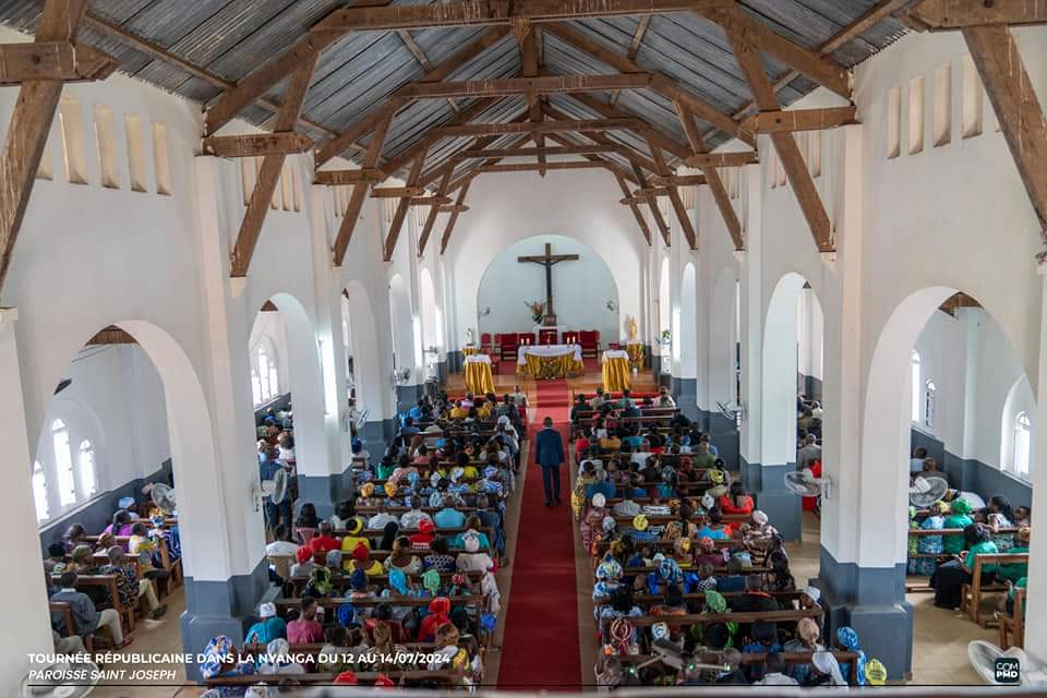 Ce dimanche 14 juillet, Madame Zita Oligui Nguema, accompagnée de son époux, Son Excellence Monsieur le Président de la République Brice Clotaire Oligui Nguema, a pris part au culte du 15ᵉ dimanche du temps ordinaire en l’église Saint-Joseph de Tchibanga. Ce moment de recueillement spirituel fut pour Madame Oligui Nguema l’occasion de rendre grâce à Dieu pour leur séjour dans cette localité.