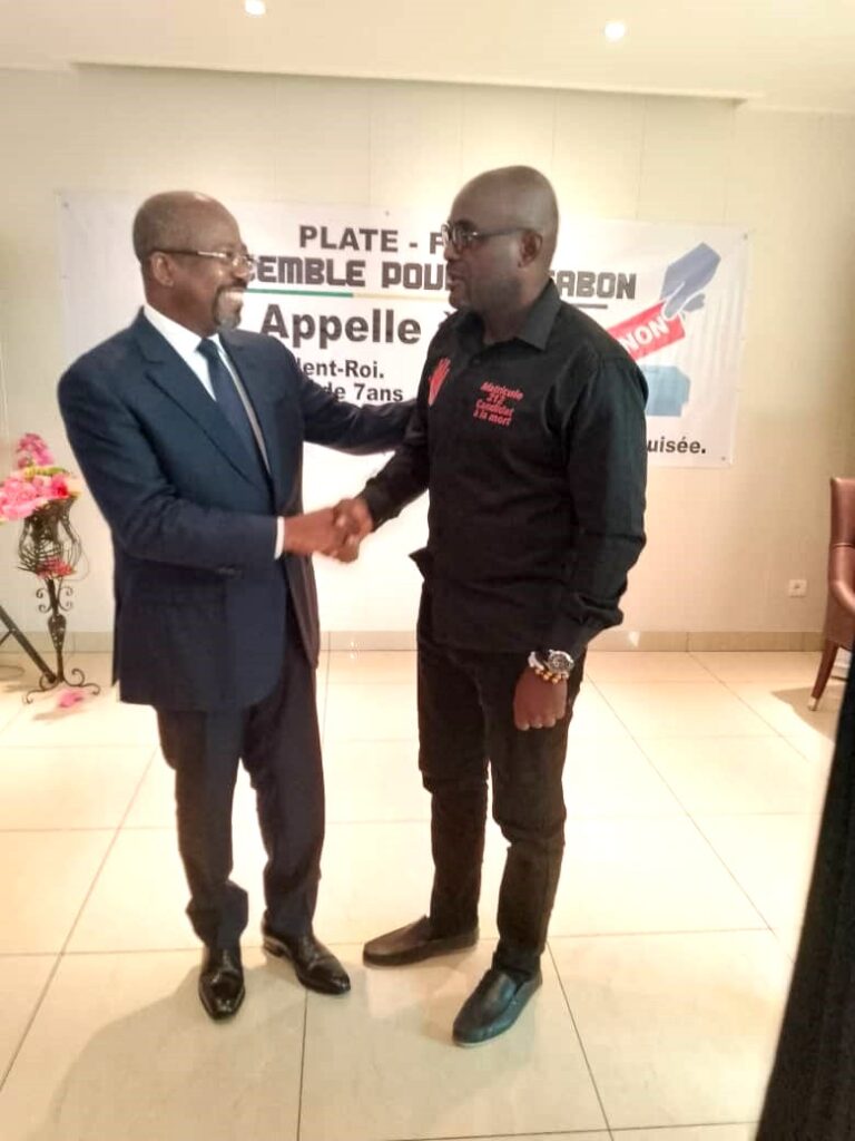 Ci-dessous, à gauche, Bilie-By-Nze et Bob Mengome unis contre le »OUI »