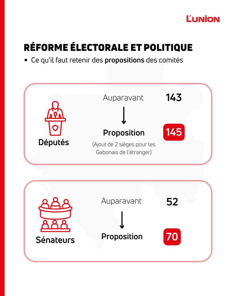 - Et, grande nouveauté, deux sièges réservés aux Gabonais de l’étranger.