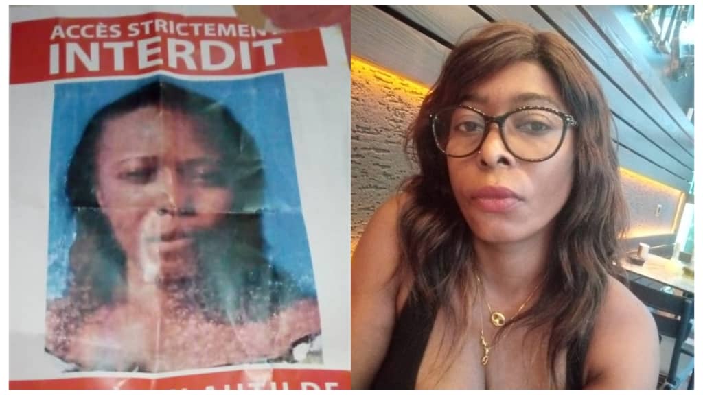 Agnès Clotilde avec à droite, une photo d’elle a été affichée à l’entrée de l’entreprise, la stigmatisant injustement.