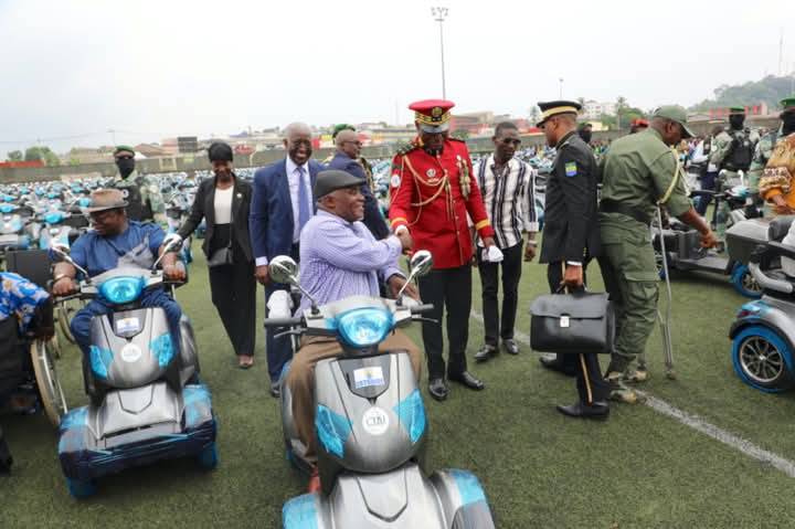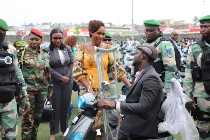 Ce jeudi 16 janvier 2025, le stade de Nzeng-Ayong a été le théâtre d’une émotion collective et d’une grande leçon de solidarité. Le couple présidentiel, fidèle à sa volonté de transformer la vie des Gabonais, a procédé à la remise de 315 scooters aux personnes à mobilité réduite. Une initiative chaleureusement applaudie, mais dont l’âme et la lumière furent indéniablement portées par la Première Dame, Zita Oligui Nguema.