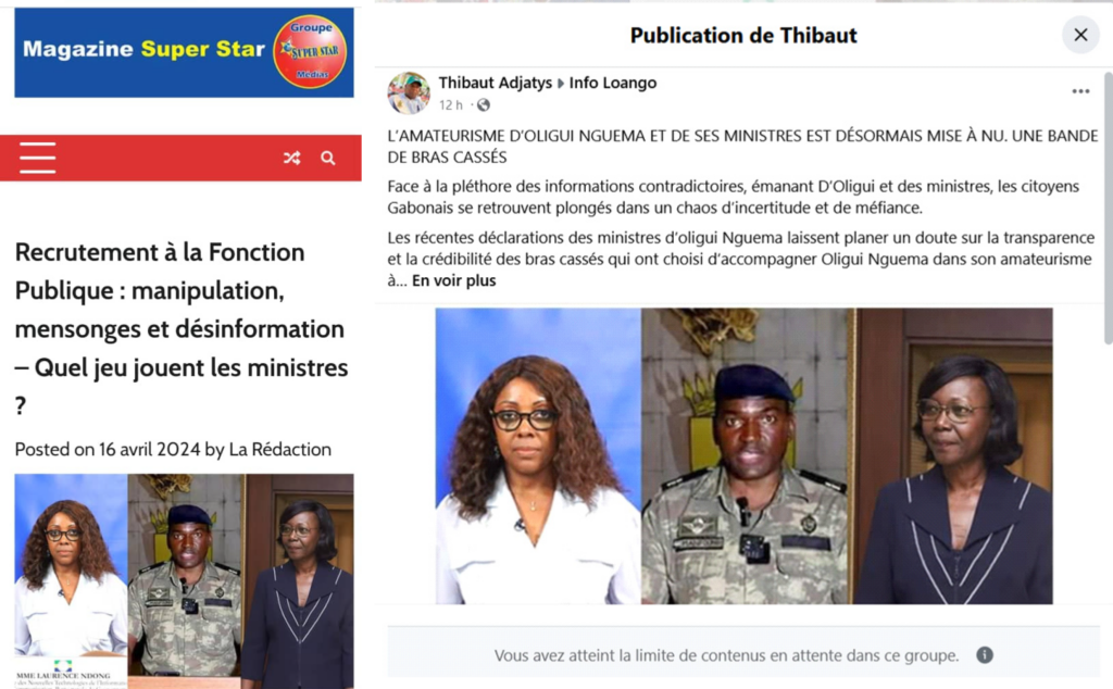 Ci-dessous, à gauche, l’article original de Super Star; à droite, l’article plagié par Adjatys pour nuire au Président Oligui.