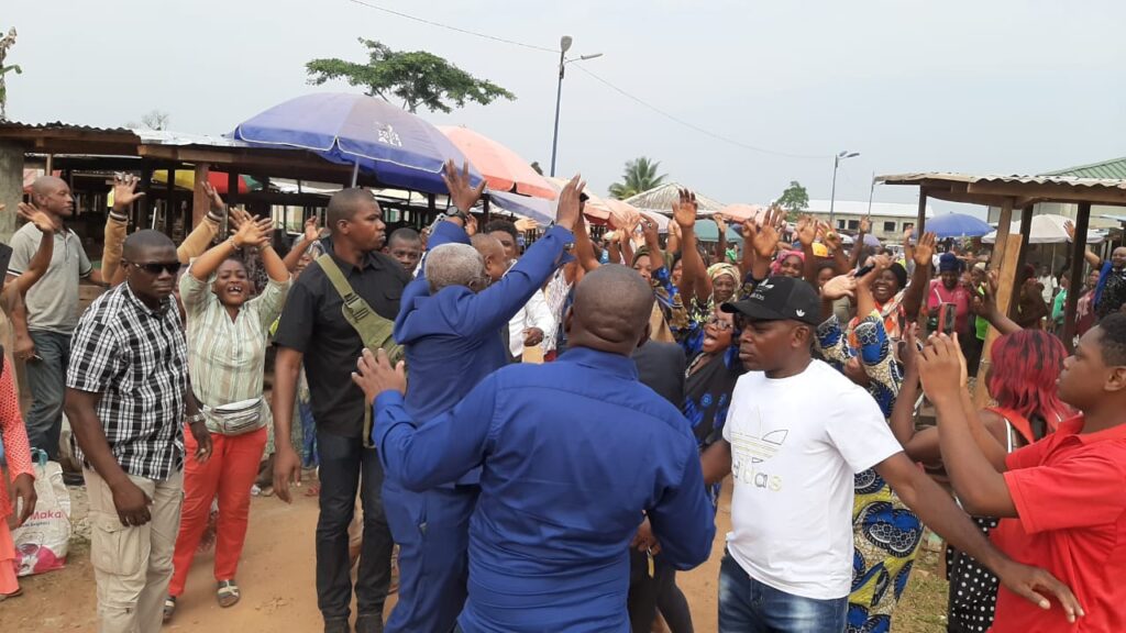 Le périple du Premier Ministre a débuté à pied, traversant les rues du marché temporaire d’Adzabalonne, guidé par le délégué spécial Jean Christophe Owono Nguema. L’accueil triomphal et spontané réservé aux deux personnalités locales a démontré l’attachement profond de la communauté envers ceux qui œuvrent pour son bien-être.