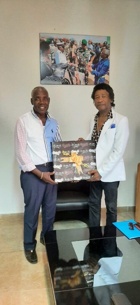Au cours de cette rencontre empreinte d’émotions fraternelles, Jimmy Ondo a remis un cadeau symbolique au nouveau Maire, marquant ainsi cette rencontre entre deux anciens frères et amis. Ce geste symbolise la solidarité et le soutien de la part de l’ancien pop star envers le nouveau responsable de la ville.